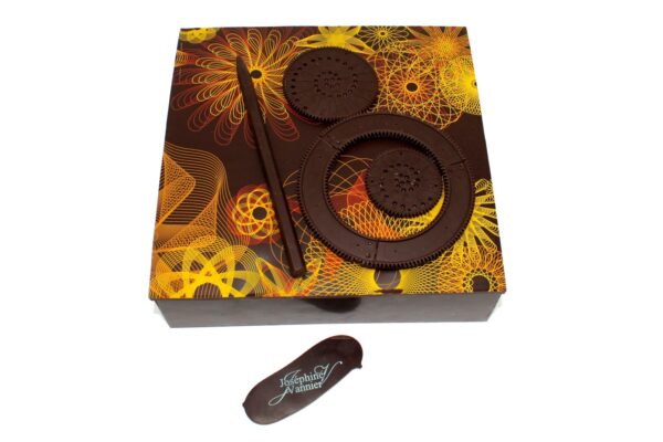 Boite Spirographe T4 Garnie en Chocolat noir 72% pur beurre de cacao.