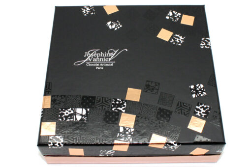 Coffret de 280g d’assortiments de chocolats avec chocolat noir et lait pur beurre de cacao.