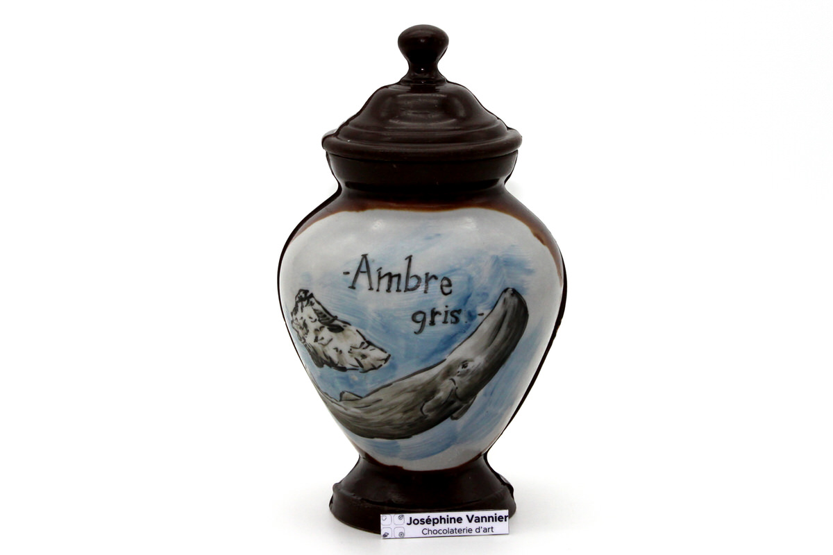 Véritable pièce de vitrine, cadeau d’exception ou plaisir pour les passionnés d’objets anciens, ce pot en chocolat incarne le savoir-faire unique de la Chocolaterie d’Art Joséphine Vannier.